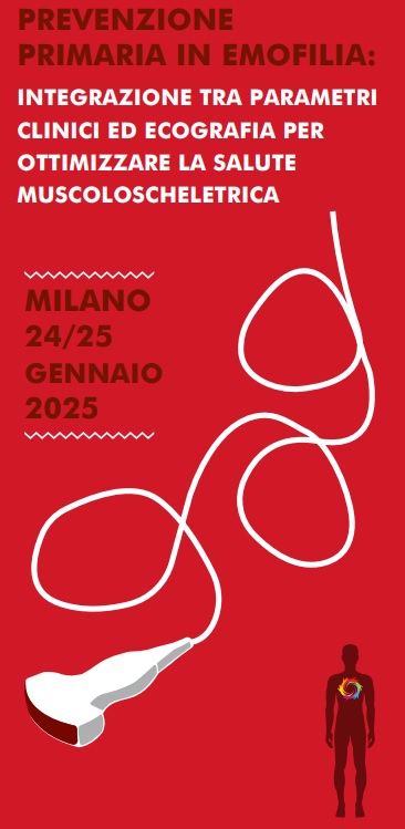 24 - 25 gennaio Integrazione tra parametri clinici ed ecografia per ottimizzare la salute muscoloscheletrica Milano | Fondazione IRCCS Ca’ Granda Ospedale Maggiore Policlinico - Centro Emofilia e Trombosi Angelo Bianchi Bonomi – Aula A - Polo Scientifico Per leggere il programma cliccare qui Per iscriversi al corso cliccare qui Evento ECM |